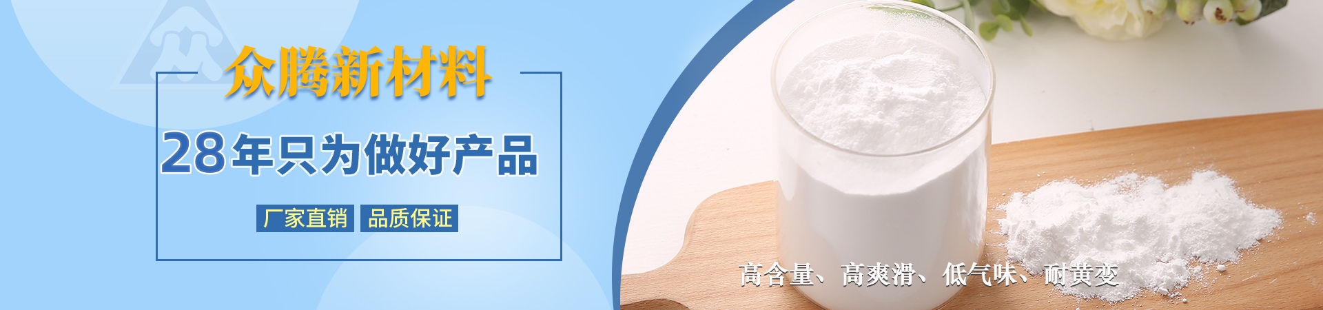 南通海門眾騰新材料科技有限公司與德國ZOTN公司合作,始建于1995年,地處長江三角洲與國際大都市上海隔江相望,座落于江蘇省南通市海門區。公司固定資產2000萬元,具備先進、齊全的科研設施,擁有一批已積累多年開發(fā)、技術應用經驗的專業技術人員,同類產品采用目前國際先進的自動控制裝置。產品主要有芥酸酰胺、硬脂基芥酸酰胺、油酸酰胺、硬脂酸酰胺、塑料光亮劑、塑料抗靜電劑、EBS、EBO、開口劑等,廣泛應用于生物降解材料、母料、塑料、吹膜、PE粉末涂料、 油墨等行業,年銷售量3000噸,出口量占60%。公司產品均已通過SGS綠色環(huán)保檢測,符合歐盟ROHS環(huán)保指令,并達食品、醫藥級要求。忠誠合作,和諧創造!讓我們攜手并進,共創美好明天!